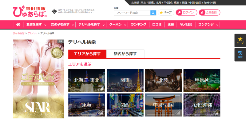 エリア・コンセプト・タイプ・プレイ・コスチュームのこだわり条件からおすすめ優良デリヘル店が検索できます。「ぴゅあらば」は様々な検索条件からお好みの情報をご案内!