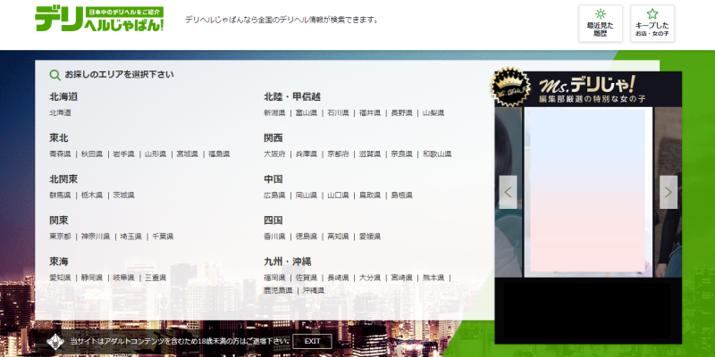 「デリヘルじゃぱん!」市区町村や駅ごとにあなたの探しているお店の情報を簡単に検索できます!さらに、人気のエリアやスポットでも簡単にお探しできます。あなたのご都合にあったデリヘル探しを最大限サポートします!